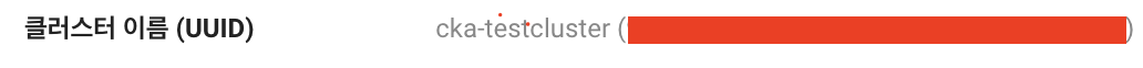 위 명령어를 사용하는데, region-code는 한국 리전이니 "KR", cluster-uuid는 콘솔의 클러스터에서 확인 가능합니다.